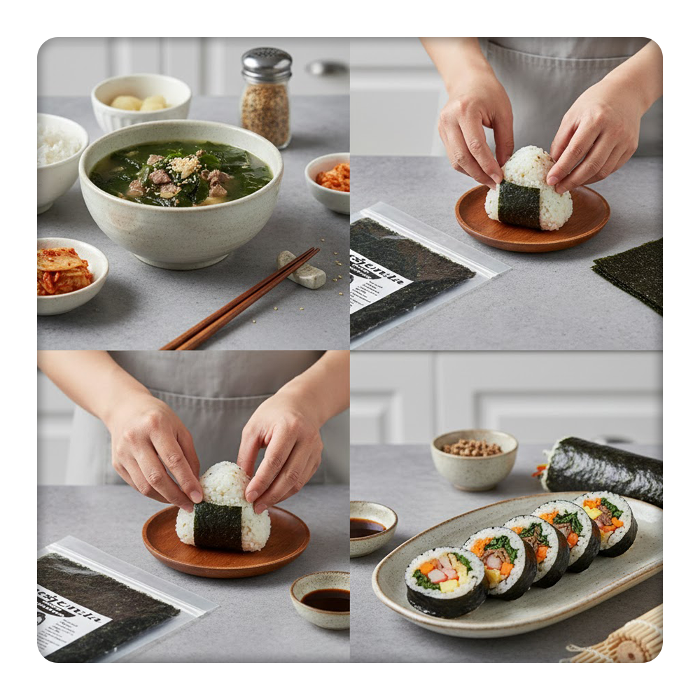 Classic Korean-style roasted seaweed, lightly seasoned for a crispy, savory taste. 1 pack / 3 sachets.