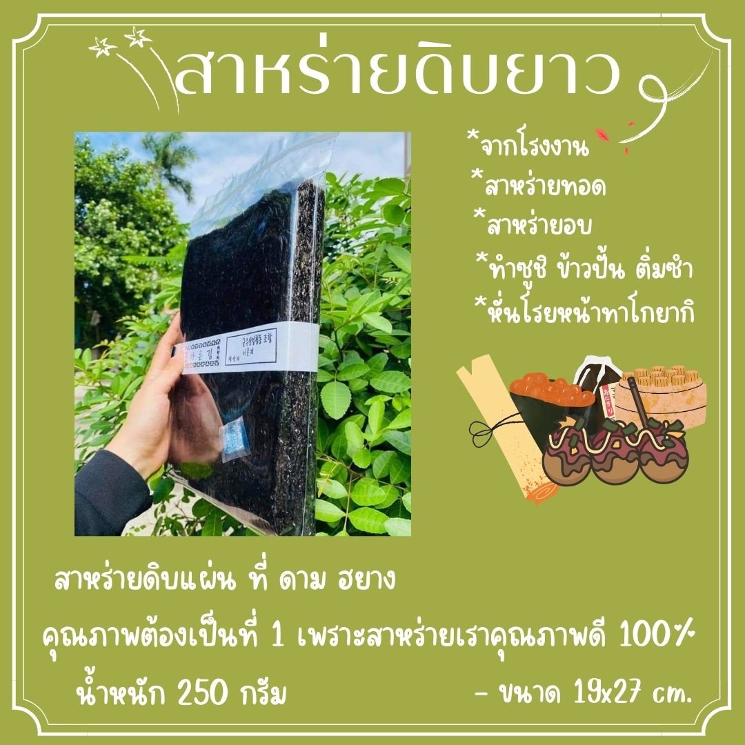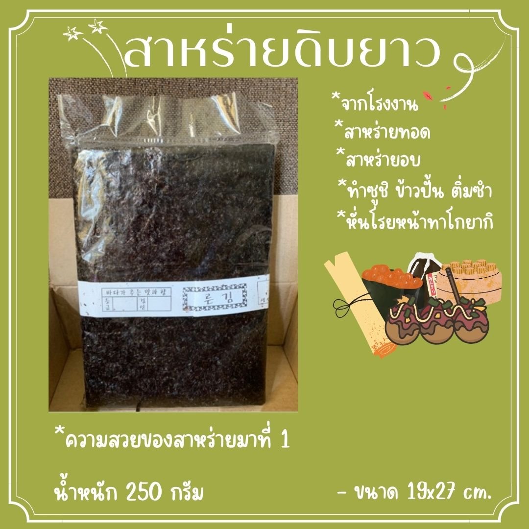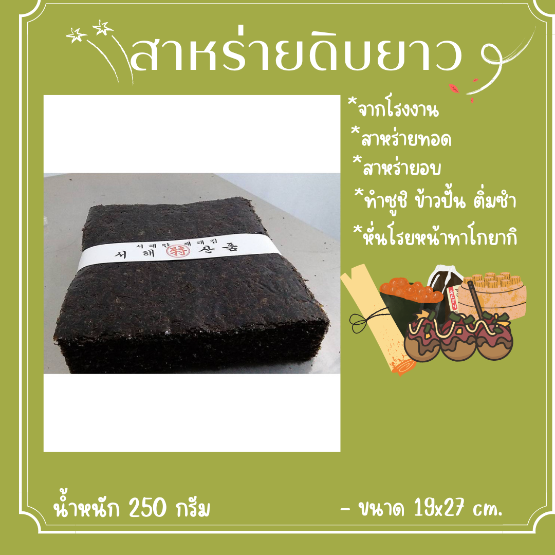 สาหร่ายดิบ (แบบยาว) เกรดคุณภาพจากประเทศเกาหลีใต้ (ยังไม่ผ่านการอบ) เหมาะสำหรับนำไปทอด, ย่าง และ อบ หรือปรุงอาหารต่าง ๆ เช่น แกงจืดสาหร่าย, ซุปสาหร่าย (ไม่ใช่สาหร่ายสำหรับการทำซูชิ)