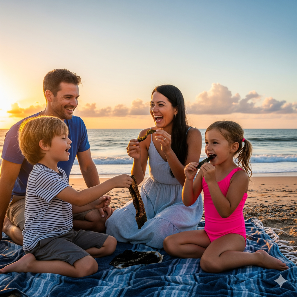 แสดงพื้นผิวและสีเข้มของสาหร่ายที่พร้อมสำหรับนำไปประกอบอาหาร